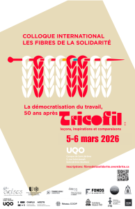 Les 5 et 6 mars dernier se tenait le Colloque international « Les fibres de la solidarité ; La démocratisation du travail, 50 ans après Tricofil : leçons, inspirations et comparaisons » au campus St-Jérôme à l’UQO. Cet événement majeur visait à souligner le 50e anniversaire de la réappropriation de l’usine Regent Knitting de Saint‑Jérôme par ses travailleurs-euses, une initiative fondatrice qui donna naissance à Tricofil (1975‑1983), la plus grande expérience d’autogestion ouvrière dans le secteur manufacturier au Québec.